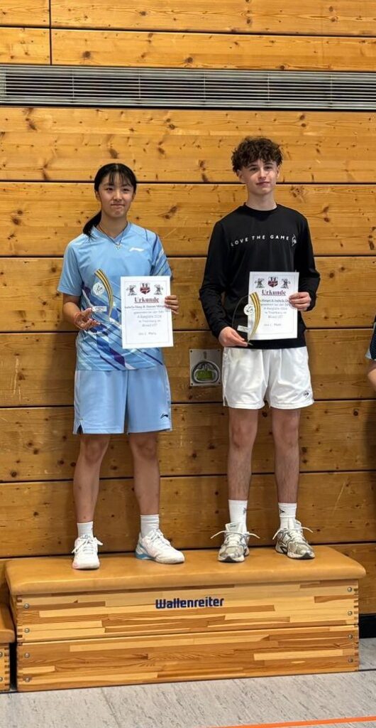 Vom 14.–15.03. fand die 1. Deutsche Rangliste U17 für das Jahr 2026 am Chiemsee statt. Gemeinsam mit seiner neuen Mixed-Partnerin Isabella Deng (TuRa Niederhöchstadt) konnte Hannes auch die knappen Spiele im Halbfinale und Finale für sich entscheiden und sicherte sich somit den ersten Platz. 🏆