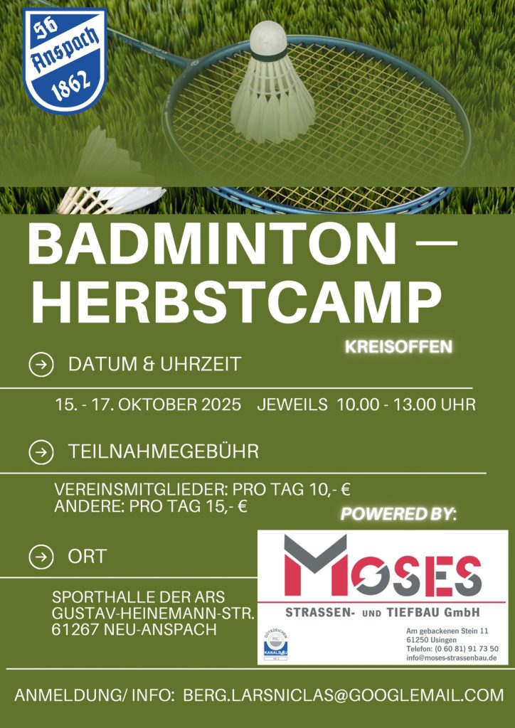 Durch ihre großzügige Unterstützung ermöglicht MOSES nicht nur die Durchführung unseres diesjährigen Trainingscamps, sondern übernimmt auch die komplette Versorgung unserer Jugend- und Schülermannschaften mit Federbällen für die gesamte Saison.