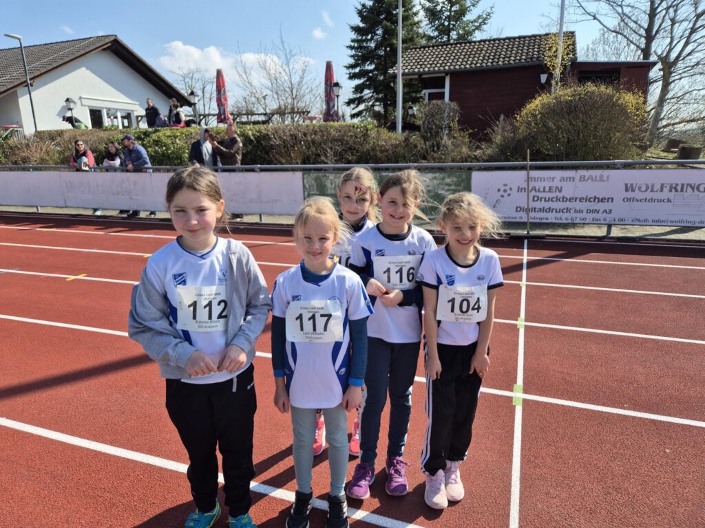 Ganz anders präsentierte sich das Wetter am eigentlichen Wettkampf-Sonntag, dem 22. März. Wo vorher noch Regenjacken dominierten, strahlte nun die Sonne mit unseren Nachwuchstalenten der U10 um die Wette. Insgesamt 11 Kinder der Jahrgänge 2017 (W/M 9) und 2018 (W/M 8) gingen hochmotiviert an den Start.