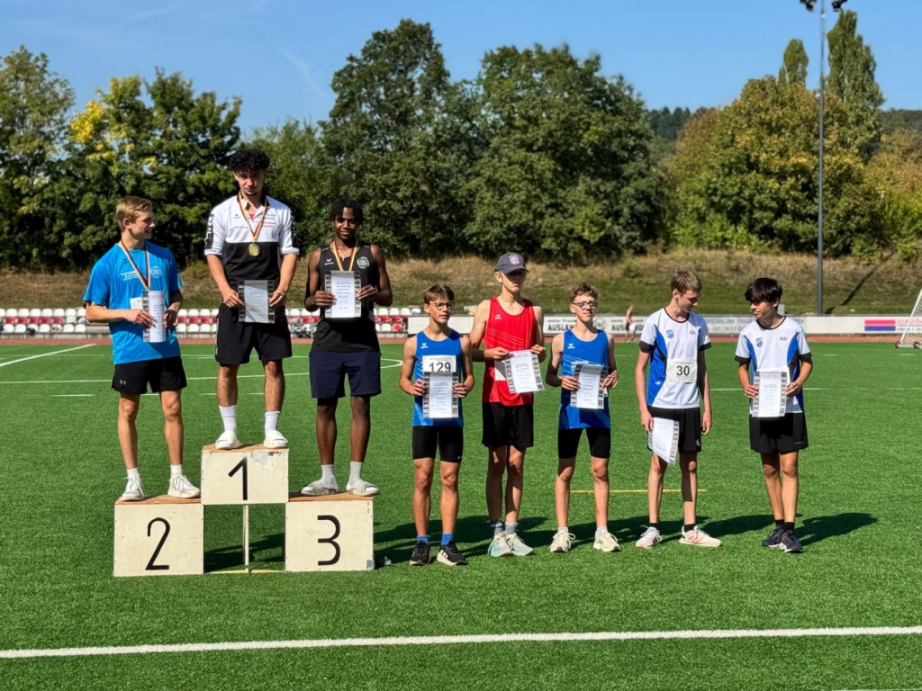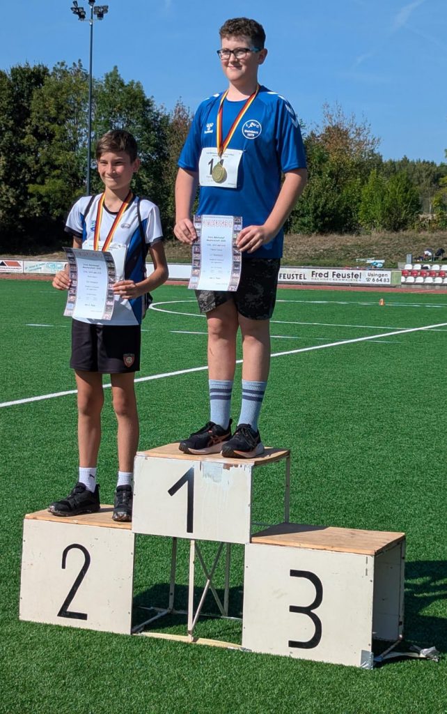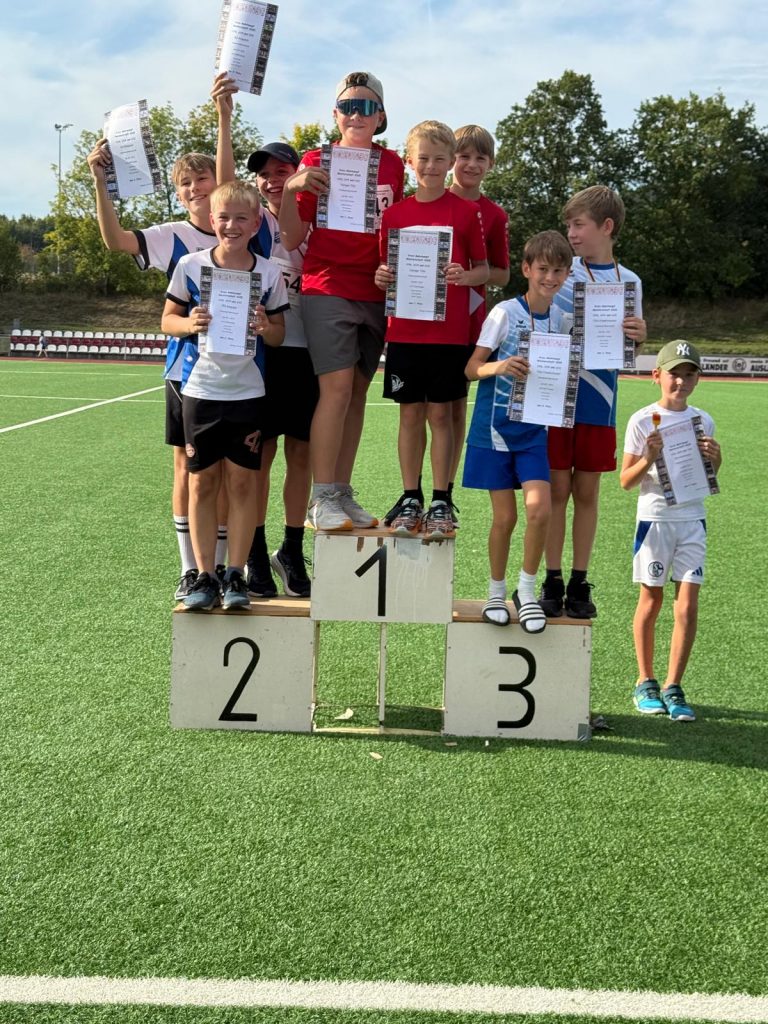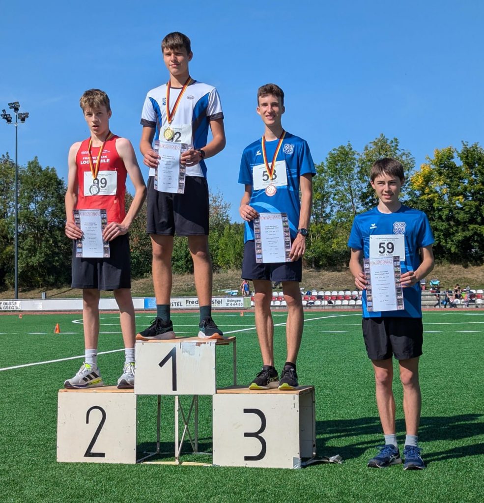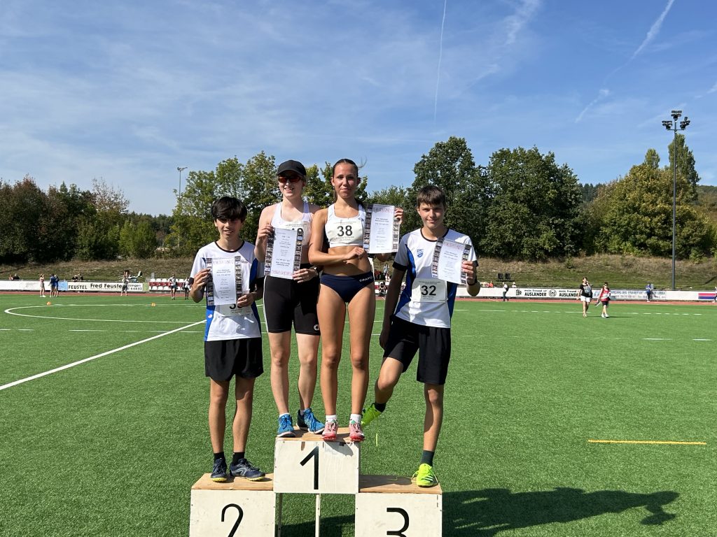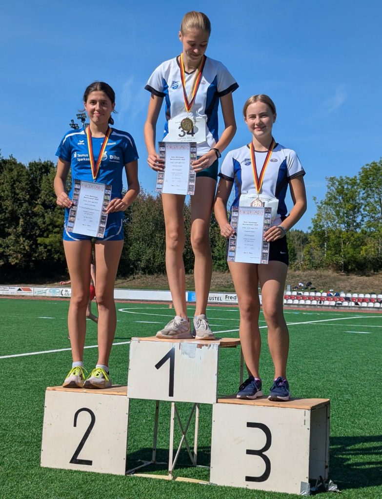 Sophia und Maja bei der Siegerehrung Olivia gewinnt die Goldmedaille Bene und Moritz bei der Siegerehrung M12 Dreikampf Boris gewinnt die Silbermedaille Sara und Bahar bei der Siegerehrung Lukas allein auf weiter Flur Fünffachsieg in der W14 Johanna gewinnt den Vierkampf Lilli in der W15 Dreikampf ganz oben Gold und Bronze für Carlotta und Charlotte im Vierkampf Julian und Johan bei der Siegerehrung der M15 im Dreikampf Neo gewinnt im Vierkampf der M14 Gold Gold und Bronze in der Staffel U14 Gold in der Staffel U14 Platz in der Mannschaftswertung WU14 1. und 2. Platz in der Mannschaftswertung U16 (mit Trainer) 1. Platz in der Mannschaftswertung WU16 VierkampfJonas und Henry bei der Siegerehrung M11Anna und Luise bei der Siegerehrung W11Siegerehrung Mannschaftswertung W11Siegerehrung Staffel U12Siegerehrung Mannschaft M11