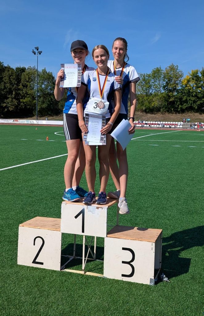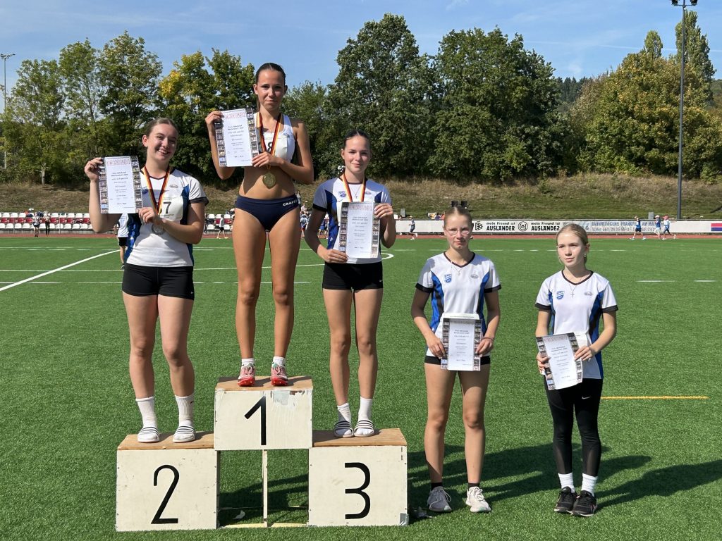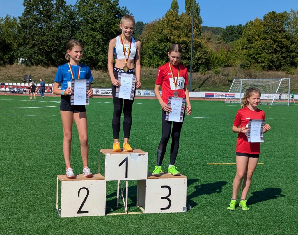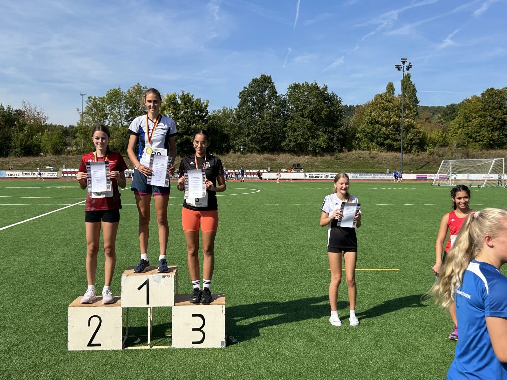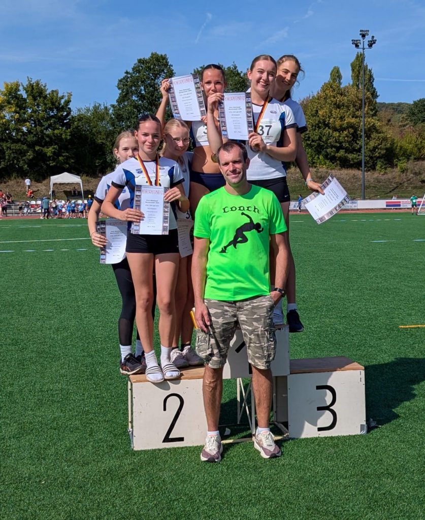 Sophia und Maja bei der Siegerehrung Olivia gewinnt die Goldmedaille Bene und Moritz bei der Siegerehrung M12 Dreikampf Boris gewinnt die Silbermedaille Sara und Bahar bei der Siegerehrung Lukas allein auf weiter Flur Fünffachsieg in der W14 Johanna gewinnt den Vierkampf Lilli in der W15 Dreikampf ganz oben Gold und Bronze für Carlotta und Charlotte im Vierkampf Julian und Johan bei der Siegerehrung der M15 im Dreikampf Neo gewinnt im Vierkampf der M14 Gold Gold und Bronze in der Staffel U14 Gold in der Staffel U14 Platz in der Mannschaftswertung WU14 1. und 2. Platz in der Mannschaftswertung U16 (mit Trainer) 1. Platz in der Mannschaftswertung WU16 VierkampfJonas und Henry bei der Siegerehrung M11Anna und Luise bei der Siegerehrung W11Siegerehrung Mannschaftswertung W11Siegerehrung Staffel U12Siegerehrung Mannschaft M11