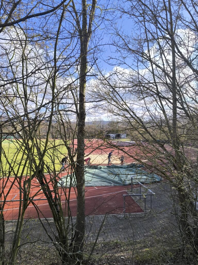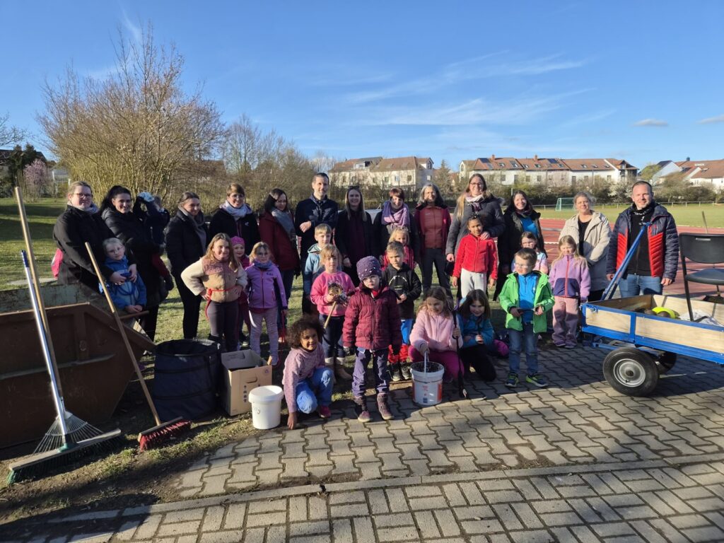 Am letztem Schultag vor den Osterferien haben die Eltern und Kinder mit den Trainern der U8 Gruppe den Sportplatz an der Wiesenau vom Winterdreck befreit und für die Außensaison vorbereitet.