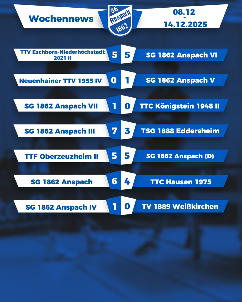Wochenbericht – SG 1862 Anspach Tischtennis