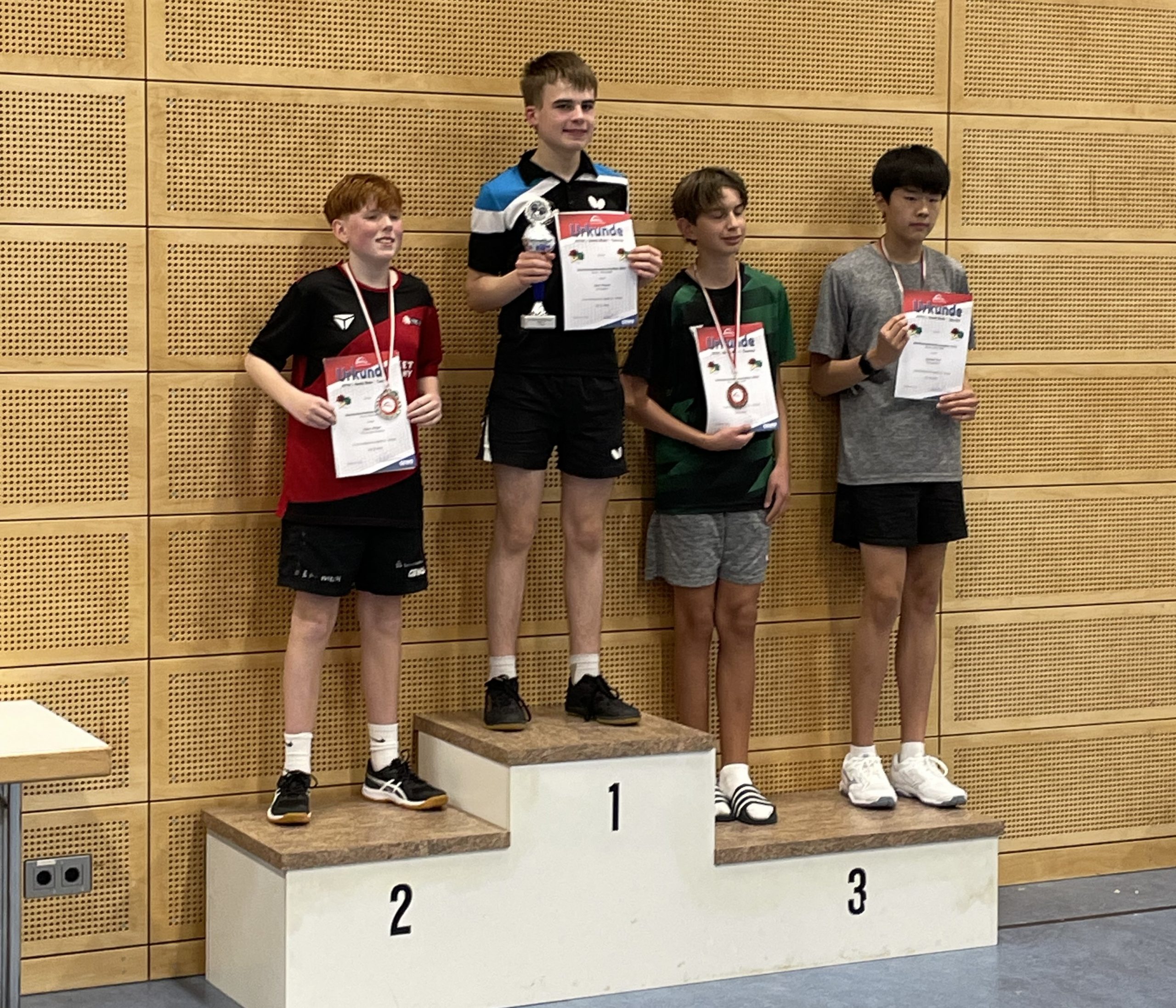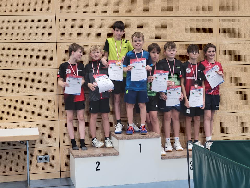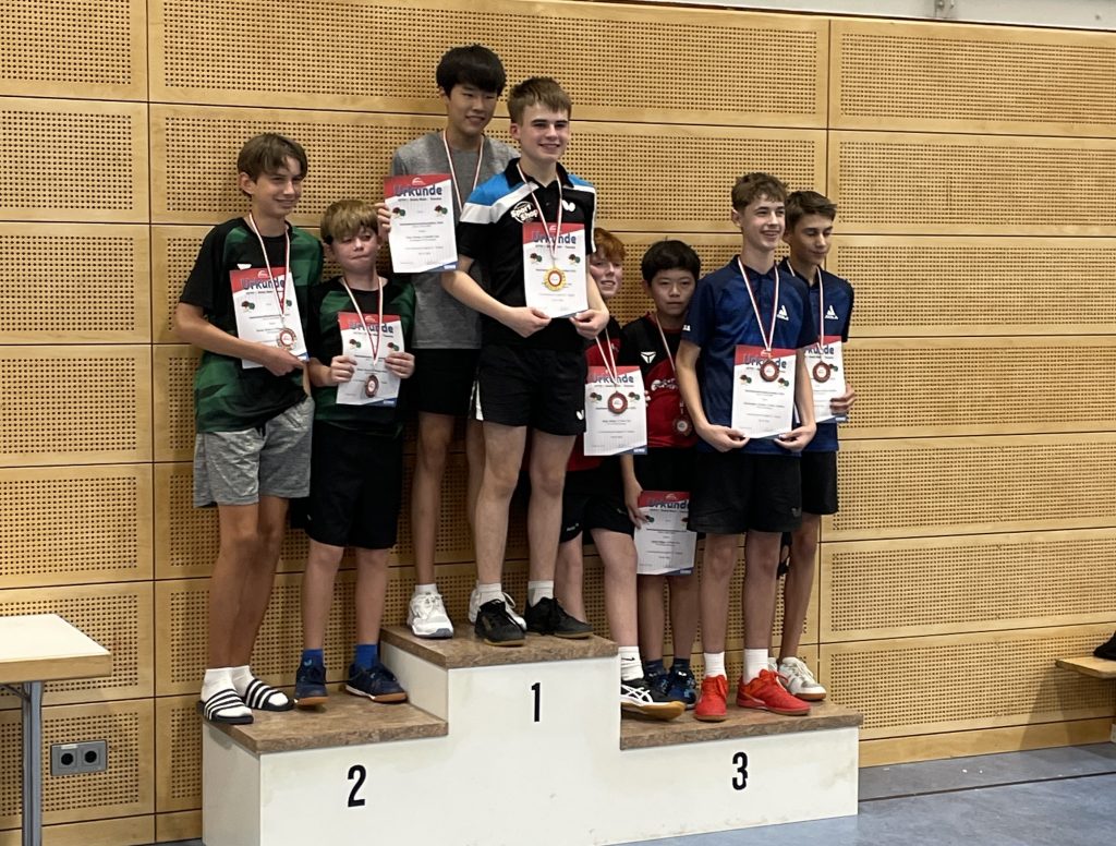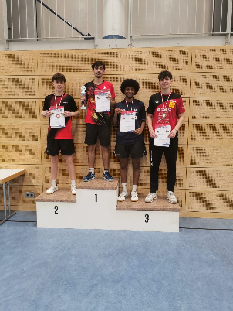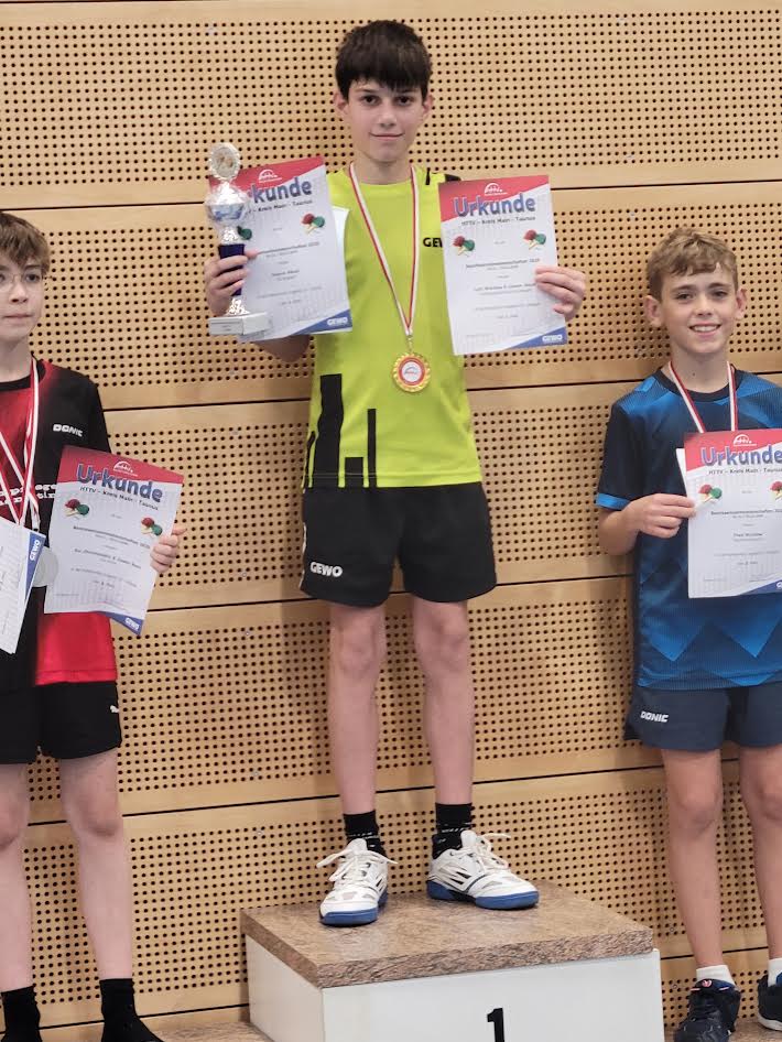 Mit 3:0 Spielen und 9:0 Sätzen dominierte er die Gruppenphase und marschierte souverän ins Finale. Dort traf er auf Dauerrivale Kai, der ihn zu einem echten Schlagabtausch zwang. Nach intensiven Ballwechseln siegte Cesare mit 3:1 und krönte sich zum Bezirksmeister der J13!