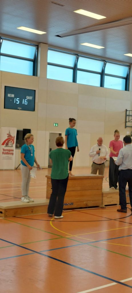 Im Wettkampf W13/14 gewann Cassie Vogelbein Platz 3 mit Übungen mit Ball und Band und erhielt die Bronzemedaille.