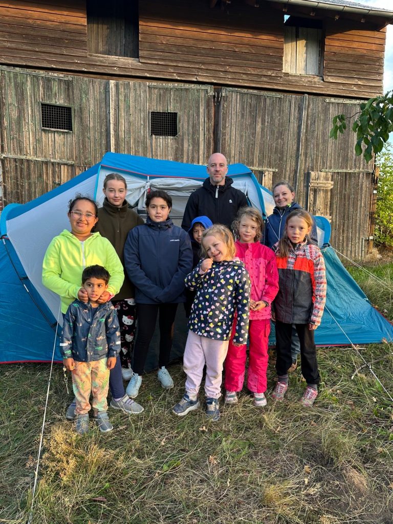 Die Gruppe der Bewegungsbaustelle traf sich am Freitag, den 29.08.2025 zum Zelten ohne Zelte auf der Wacht hinter der Scheune. Wohl wissend, dass das Wetter vielleicht nicht mitspielen wird, wurde zur Vorsorge dann doch ein groĂes Zelt aufgestellt. Davor platzierten sie eine Picknickdecke mit mitgebrachten Leckereien.
