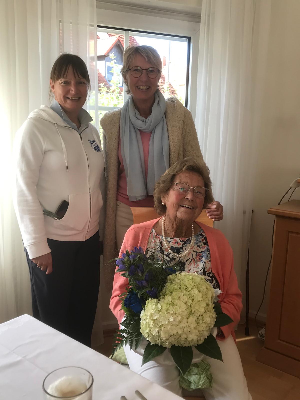Am 05. Oktober genoss Rosemarie ihren 90. Geburtstag. Das große Fest, es war ein Kommen und Gehen von vielen Gratulanten und Gratulantinnen, wurde bei ihrer Tochter Margit ausgerichtet. Rosemarie war sichtlich überrascht, daß auch die Turnabteilung davon wusste und ihre besten Wünsche übermitteln wollte. Ursula Jäger und Jutta Schlapp überbrachten diese gerne und sehr zur Freude der Jubilarin.